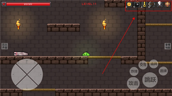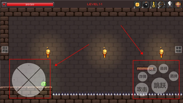 1、左边的是控制角色移动,右边则是攻击、跳跃、互动、道具