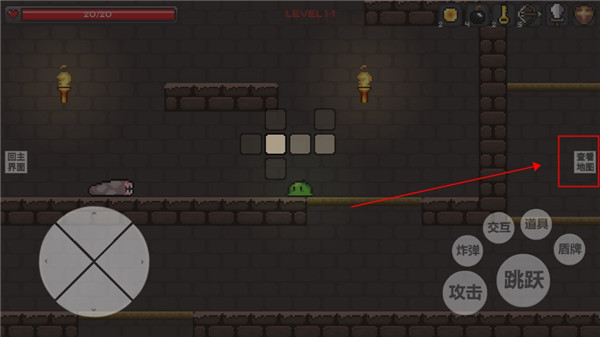 7、左上角是你的血条,一旦归零游戏就会结束,我们可以通过击杀小怪或者是打破箱子获得回复药水