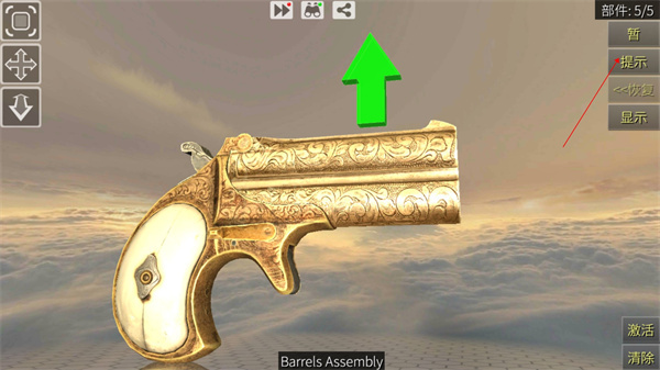 如果您弄不清楚那个零件可以拆卸,试着点击“提示”按钮,拆卸的零件数和总零件数会在右上角显示。完成此型的“完全拆解”式会解锁对应的“组装”式,要了解如何控制视角,点击“视角和型控制”按钮。