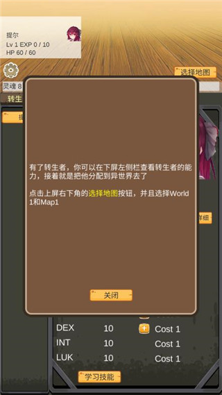 6、开启你的转生旅程,点击屏幕中的地图按钮,可以选择word和map。