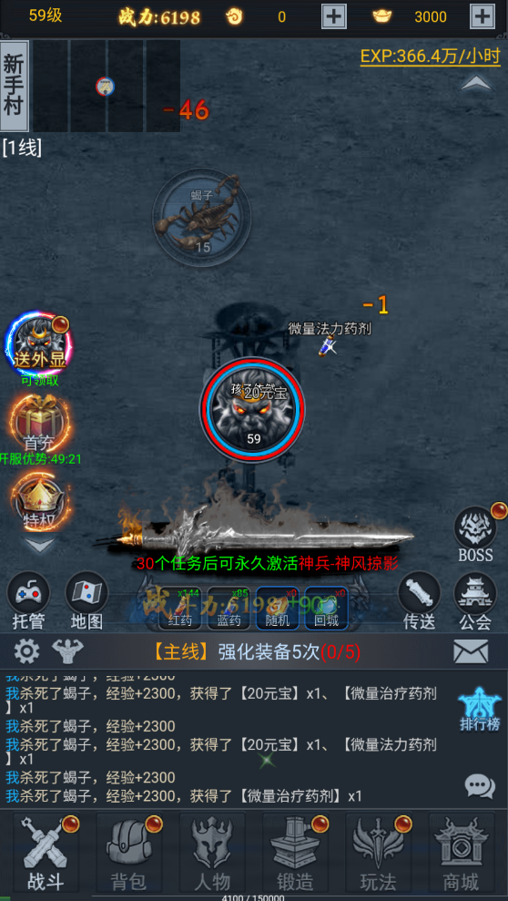3、经验卷轴:怪物掉落,配合托管助手自动挂机BOSs,升级效率更高。