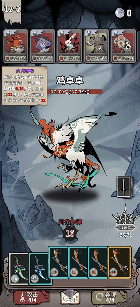 这里说明,四张牌不卡出牌,只是前期跌倍数需要打相应的牌,后面积累完12倍,随便出牌都会触发