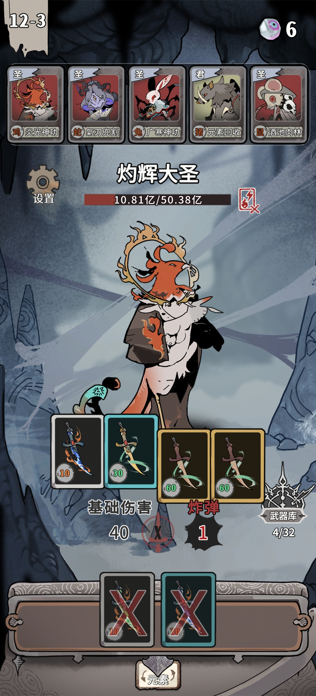 游戏中最大的特色就是卡牌系统的策略性,每次战斗都需要根据敌人的属性选择最优组合。Roguelike 的随机生成关卡让每局都充满未知感。尤其是同花炸弹这个机制,真的让我眼前一亮——只要收集四张相同属性的卡牌,就能触发 16 倍伤害,这绝对是最强输出手段。