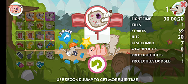 提供了四种不同的玩法模式可供自由选择,而且每个小猪格斗游戏环节都会有所不同,并为您提供多种有趣的方式来击败您的敌人,不错需主要的是在每个模式中我们都需要注意自己的血量消耗,否则当生命值耗尽就代表着死亡,因此若想得到高分就必须有足够的健康,以及拥有超快的反应能力和游戏技能,针对不同的敌人发挥出不同操作打发等,所以整体来说非常的具有挑战性。