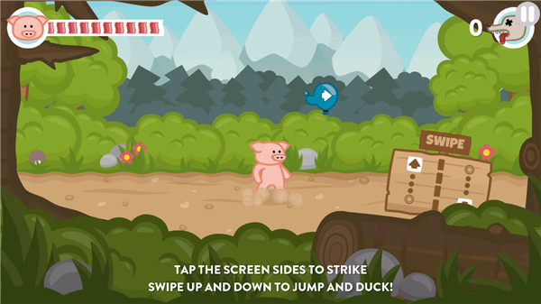 4、游戏的操作简单,一键就可以可以控制小猪,同时搭配了快节奏的音效玩家可以对狼进行连环的进攻