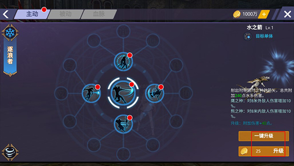 4、提升主角等级可以解锁技能,这些技能都可以进行升级提升,增加额外属性。