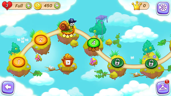 蜗牛鲍勃3(Snail Bob 3)是一款全新的闯关益智手游,该游戏是蜗牛鲍勃系列游戏的全新续作,相比于前作,不仅画面制作更加精美,而且还增加了许多的新玩法,其中就包括了选关玩法。该玩法需要玩家顺利通关后才能重复体验,当你没有收集到足够数量的星星,导致无法完美通关时,就可以重新选关,返回之前的关卡并进行再次挑战。