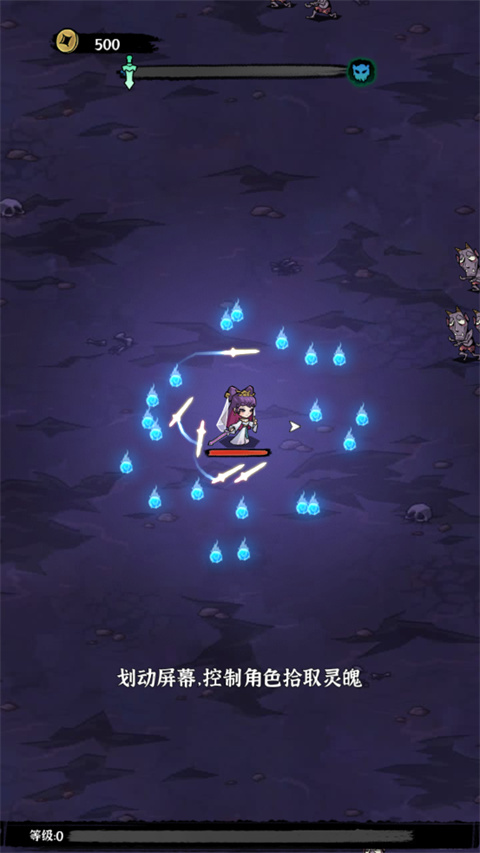 2、你需要通过滑动屏幕来控制角色来拾取灵魂;