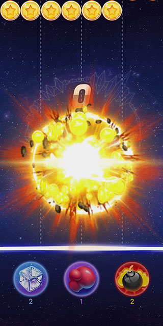 5、炸弹的名称叫做全屏爆炸,效果是全屏球球清除一次,同时屏幕上还会显示炸弹爆炸的特效,这也是游戏中最强力的一种道具了。