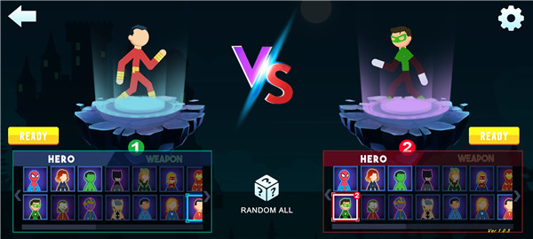 2、选择你喜欢的火柴人角色和武器进行对决;
