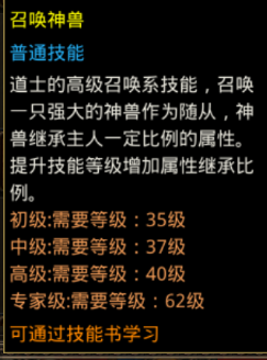 2、博学多识的道术士擅长治愈、用毒、隐身、书符,还可以召唤骷髅和神兽作为自己的护法。但与世无争的信念使道术士的攻击力平平,比起在前方作战,他们更适合在后方支援自己的同伴,同时,由于道家坚信万物平等,对神鬼皆敬而远之,不承认“神”有着高于常人的地位,所以对魔法的抵抗能力也很强。为了纪念道家的创始人,玛法大陆上的道术士们都喜欢自称虚天的后人。也许并不适宜用“强大”来形容这些 虚天的信徒,但道术士无疑是玛法大陆上最受尊重的职业。