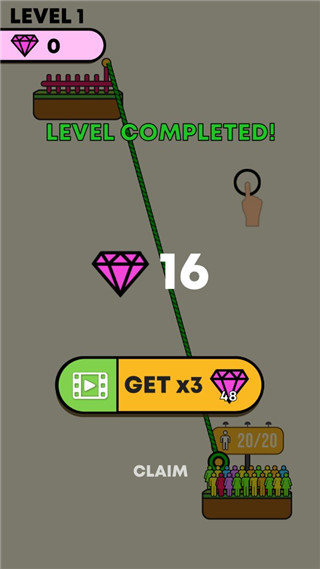 1、游戏操作方式十分简单,只需要一根手指在地图上画出绳索的大致方位即可,竖屏的设计符合手机用户的操作习惯。