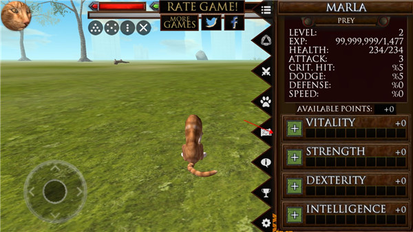获取经验捕获和吃你的猎物,照顾你的家人,完成任务!提高你的小猫,以增加他们的健康和攻击伤害,赚取积分,以提高您的统计数据,并增加您的包的大小。