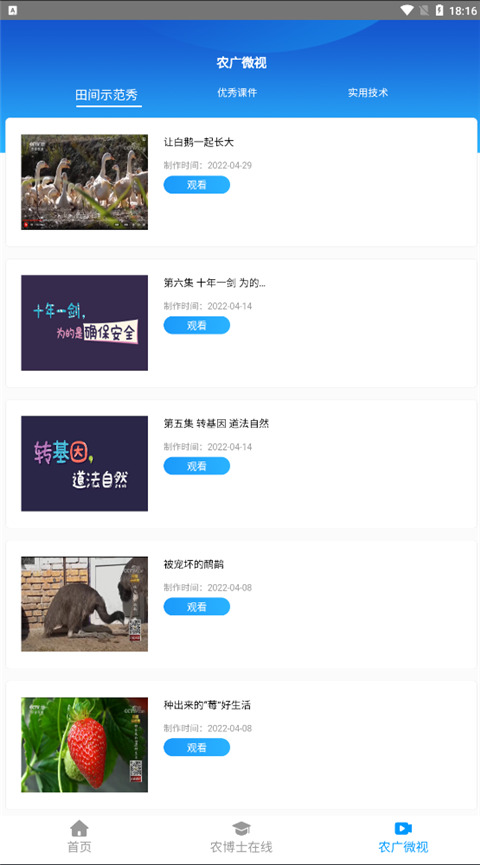 集成农业技术微视频学习资源,包括田间示范秀、优秀课件、实用技术三类,媒体资源科负责视频学习资源管理。