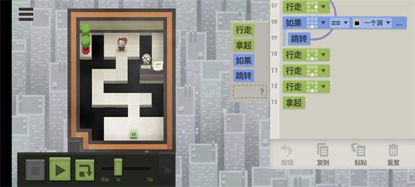 比如拿起一个方块之前如果不判断手中无方块并且地上有方块,工人就会报一个错误,这会增加执行时间。即使因此导致某些情况下代码执行超时也无所谓,反正有任意一次能执行成功就可以了。