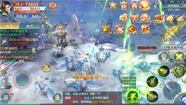 3、除了武侠剧情,游戏还提供仙界斗战的玩法,让玩家感受神秘的仙侠世界,并参与激烈的战斗