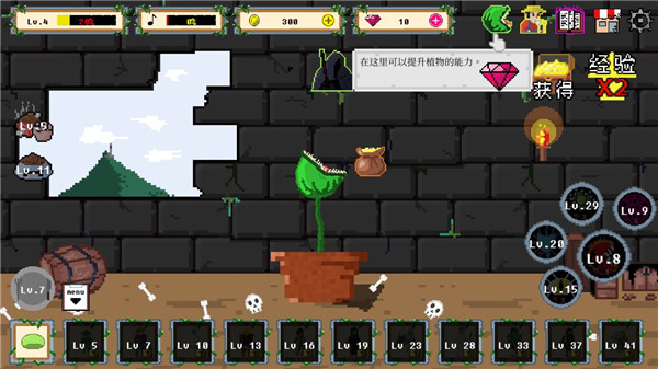 3、让自己的植物吞噬更多敌人,提升植物等级,不断提升自己的实力,在地牢中冒险