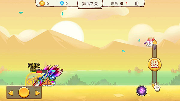 3、通过左方按钮可操控狗头进行移动,通过上下滑动“投”可进行远程射击;