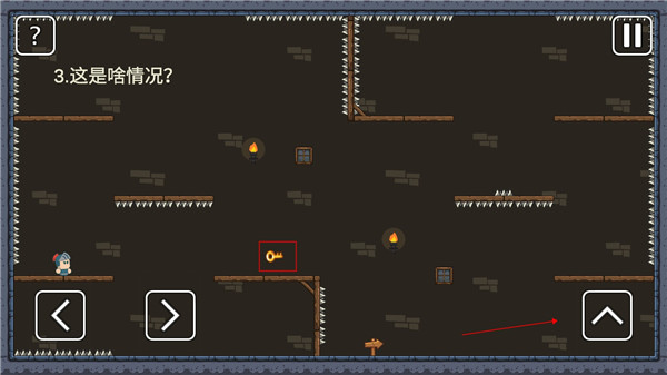 2、游戏以简单的陷阱为主题,下方是三个操作按钮。