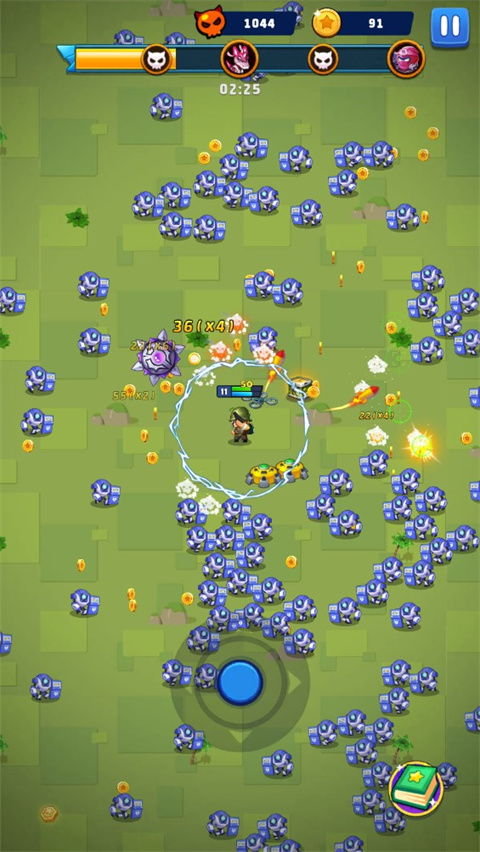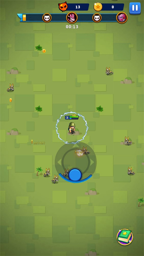 4、通过滑动屏幕来控制角色的移动方向,你需要在这个超大的地图中消灭大量的敌人,保卫世界;