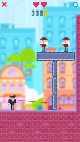 子弹大师游戏是一款卡通风格的射击冒险游戏,玩家将扮演一名特工,在危机重重的敌后完成各种各样的挑战策略任务,玩家只拥有一发子弹,一次机会,玩家需要通过自己的策略以及游戏周边的物品进行射击,完成自己的任务挑战。玩家手上的子弹很少,你必须有了十足的把握之后才能开始射击,非常考验你的技术,你可以去商店中解锁更多的武器来增强你的战斗力;子弹大师手游最新版中有很多关卡等你前来挑战,每一关都是一个全新的体验,在关卡中找准最佳角度发射击杀掉关卡中所有的目标,让你感受射击的快感,相信你们肯定能克服重重困难,有兴趣的小伙伴快来下载体验吧!