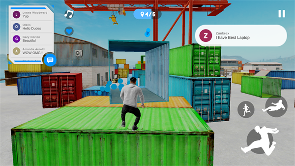 4、游戏的操作也很简单,左侧摇杆控制角色移动,右侧则是控制视角,玩家在游戏中需要通过各种障碍,通过标记点,以最快的速度抵达将获得金币奖励。