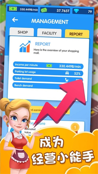 2、迷你商业街官方版可以不断升级商店以增加商店等级。级别越高,获得的客人越多,来自不同等级和收入的收入也就越高