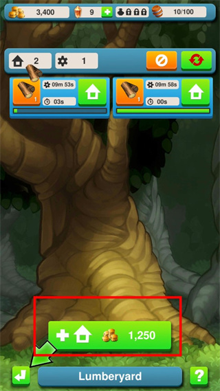 4、在这里是开始建造我们的伐木场,点击金币1000。