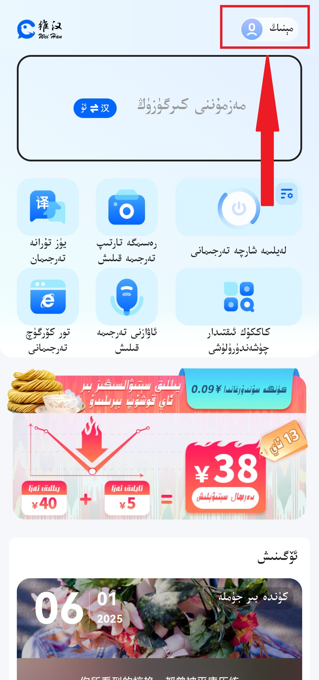 1、打开维汉翻译app,点击悬浮球翻译。