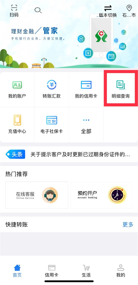 河北农信手机银行的“明细查询”可以查询绑定卡近六个月的交易明细。