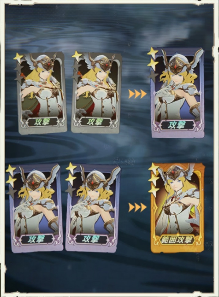 1、玩家需要拖动卡牌并合成更强大的高星卡,两张低星卡只能合成一张高星卡。