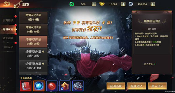 绝情花谷分【组队进入】和【单人进入】,大家可以根据情况自行选择。组队进入的话,可是会有额外的经验加成哦。
