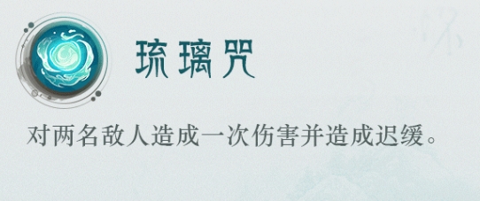 三技能:琉璃咒:对两名敌人造成一次伤害并造成迟缓。