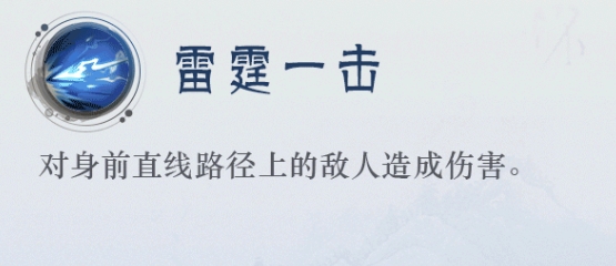 一技能:雷霆一击:对身前直线路径上的敌人造成伤害。