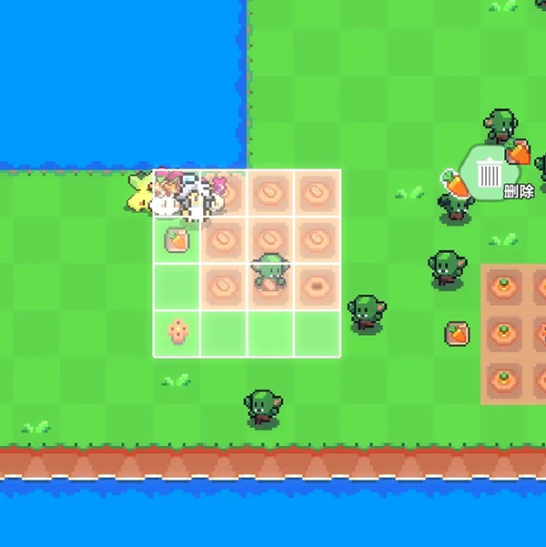 5、假设我们要将农作物移动到图中红色大方块区域,则洒水器应该处于红色小方块区域。