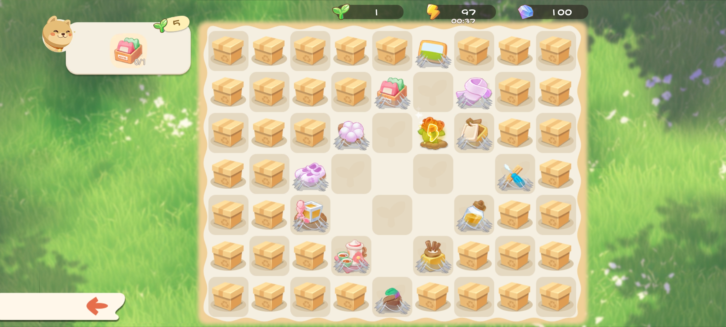 1、通过合成元素获得修复建筑的绿叶,玩家可以随意移动元素,有蜘蛛网的元素是不能移动的,但是可以用来合成。