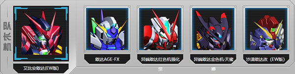 艾比安敢达(EW版)+敢达AGE-FX+异端敢达红色机强化型+异端敢达金色机·天蜜娜+沙漠敢达改(EW版):艾比安提升全队攻击频率,红异端控制敌方,压制前排,金异端集控制,回能,输出于一体,敢达AGE-FX可以解自身控,还能回复全体耐久,同时拥有高输出。