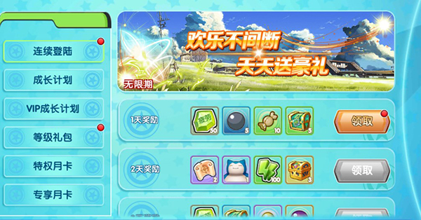 4、游戏内还有连续登陆、等级礼包、成长计划等福利活动,大量免费福利轻松领取。