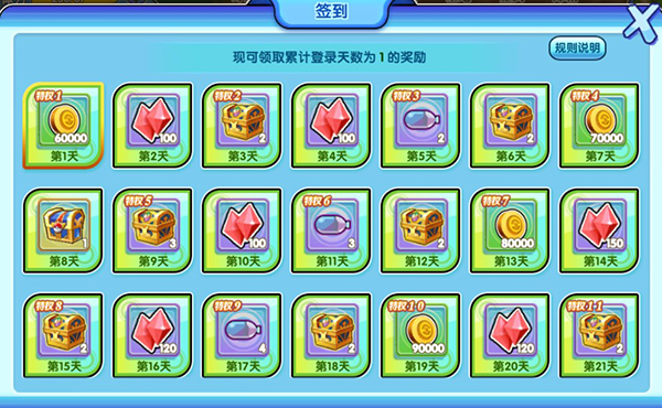 1、七日登录,连续七天,每天登录就能领取丰富豪礼,第七日还有终极豪礼超进化精灵可以领取。
