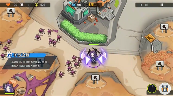 1技能:千刃之舞:高速旋转,释放无尽能量。将周围敌人拉进造成大量伤害