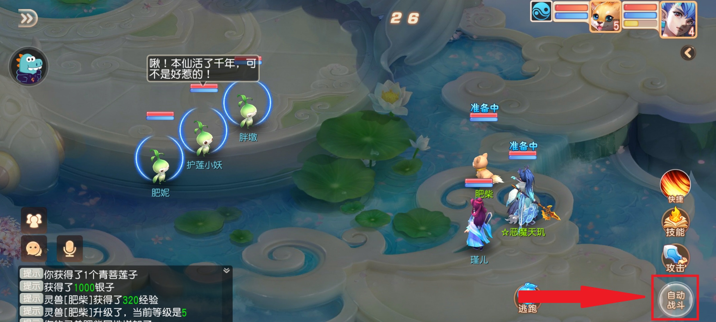 3、遇到小怪时玩家可以开启右下角的自动战斗,无需亲自动手就可以轻松完成战斗。