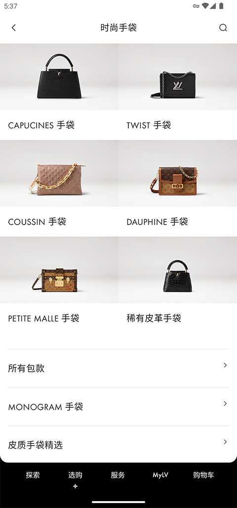 LouisVuitton简称LV,中文名叫路易威登,是一个享誉全球的奢侈品品牌,随着数字时代的到来,LV推出了一个线上购物软件LouisVuitton,用这种新的方式接触客户,促进了品牌发展,加强了与消费者之间的联系。用户通过线上LV app,可以选购当季的新款商品,观看和重温最新时装秀、轻松访问最近发现的单品、享受每月精选产品服务等。LouisVuitton软件还支持用户查看发票、创建愿望清单、分享挚爱单品等操作,丰富的个性化功能帮助你轻松获得高质量服务!