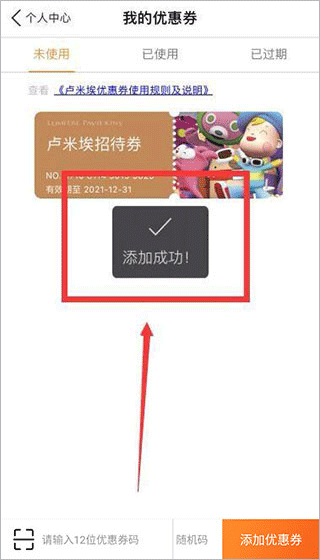 5、扫描结束后,选择【添加优惠券】,就可以将电影券兑换到app上了。