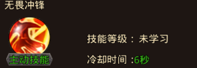 2、无畏冲锋(主动技能):猛将位移招式,向目标方向发动冲撞,对路径上的最多4个目标造成伤害,有几率造成眩晕;