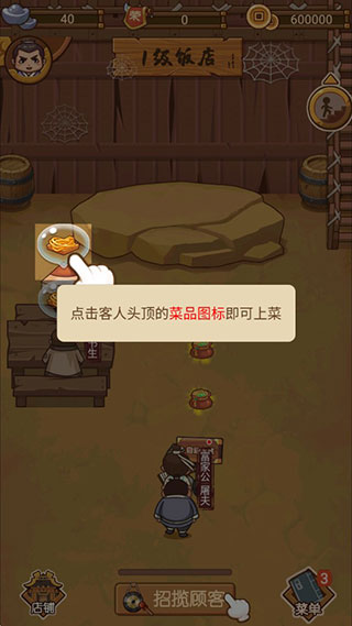 1、点击客人头顶的菜品图标即可上菜,记住不要让客人一直等待。