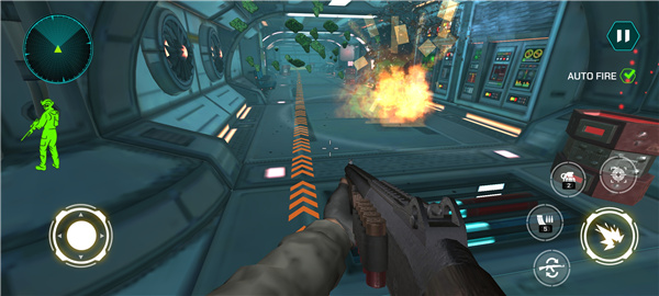 对于新手而言,简单的操作指南让你快速上手:通过左侧摇杆控制移动,右侧按钮进行射击或投掷手雷。游戏还贴心地加入了奔跑功能,玩家可以收起武器加速移动。根据地面引导线前行,你将遇到外星人敌人。无论是开启自动射击模式还是手动瞄准,击败这些外星威胁都充满乐趣。