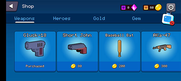 5、左上方是商店,点击进入可以花费金币购买解锁更多武器和皮肤。