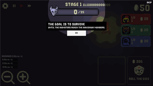 2、首先的目标是生存下去,随着时间怪物的数量会越来越多。