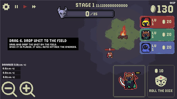 4、点击下方的骰子来购买单位,初始为100黄金。