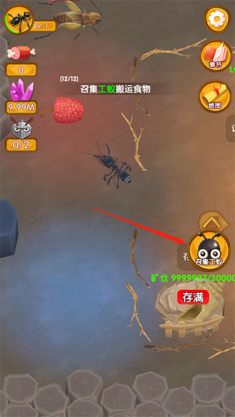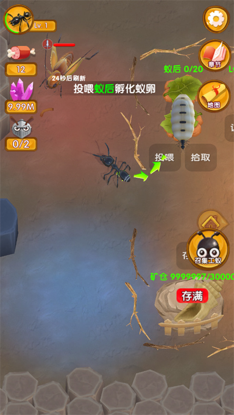 孵孵孵!投喂蚁后获得兵蚁,壮大队伍。
